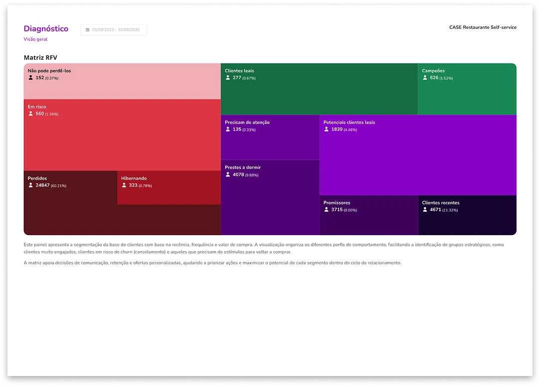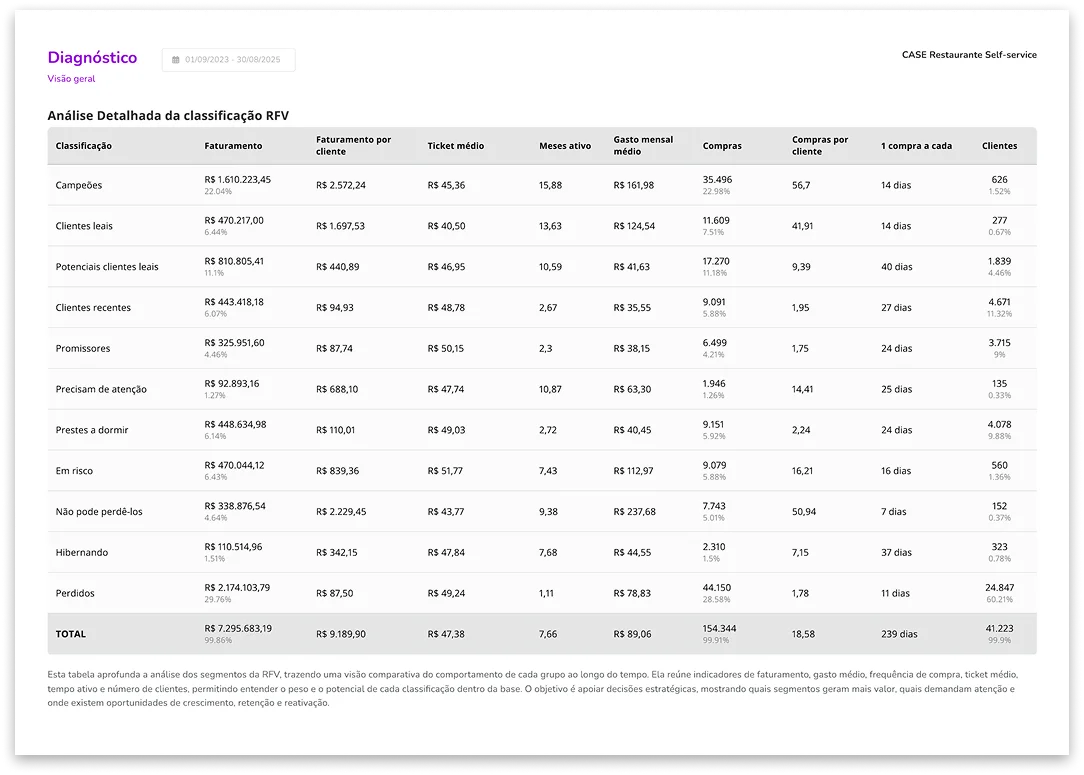 O Diagnóstico mostra quantos compram, somem e sustentam seu faturamento.